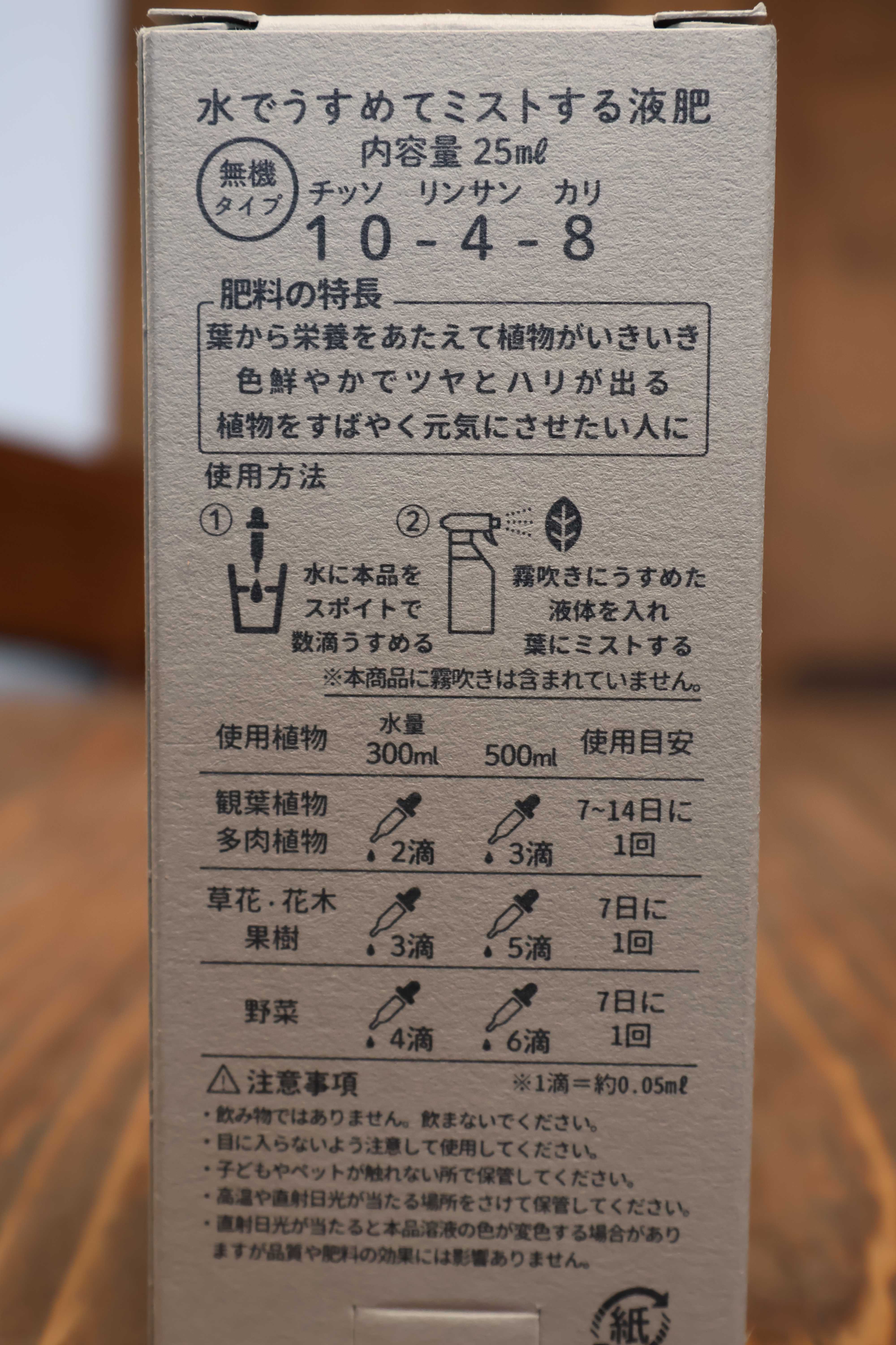 使い方は簡単で、規定回数をスポイトすれば、あとは水でうすめて植物にあげるだけ。